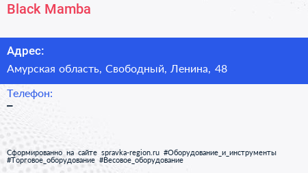Black Mamba по адресу Амурская область, Свободный, Ленина, 48 в дальнейшем Организация, размещена в следующих категориях: