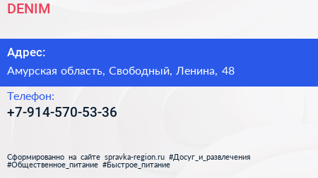 DENIM по адресу Амурская область, Свободный, Ленина, 48 в дальнейшем Организация, размещена в следующих категориях: