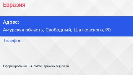 Евразия по адресу Амурская область, Свободный, Шатковского, 90 в дальнейшем Организация, размещена в следующих категориях: