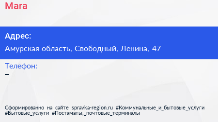 Mara по адресу Амурская область, Свободный, Ленина, 47 в дальнейшем Организация, размещена в следующих категориях: