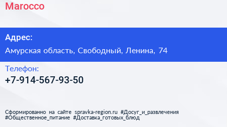 Marocco по адресу Амурская область, Свободный, Ленина, 74 в дальнейшем Организация, размещена в следующих категориях: