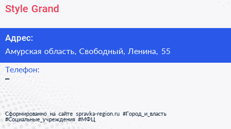 Style Grand по адресу Амурская область, Свободный, Ленина, 55 в дальнейшем Организация, размещена в следующих категориях: