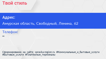 Твой стиль по адресу Амурская область, Свободный, Ленина, 62 в дальнейшем Организация, размещена в следующих категориях: