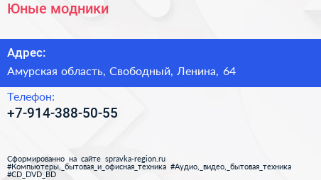 Юные модники по адресу Амурская область, Свободный, Ленина, 64 в дальнейшем Организация, размещена в следующих категориях: