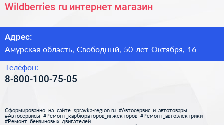 Wildberries.ru, интернет-магазин по адресу Амурская область, Свободный, 50 лет Октября, 16 в дальнейшем Организация, размещена в следующих категориях: