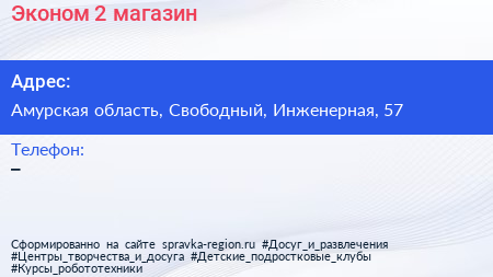 Эконом-2, магазин по адресу Амурская область, Свободный, Инженерная, 57 в дальнейшем Организация, размещена в следующих категориях:
