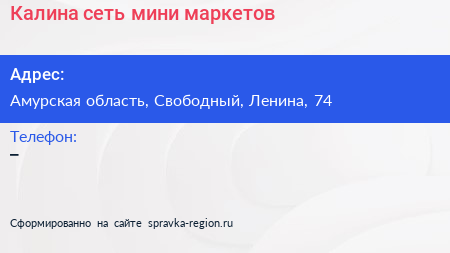 Калина, сеть мини-маркетов по адресу Амурская область, Свободный, Ленина, 74 в дальнейшем Организация, размещена в следующих категориях: