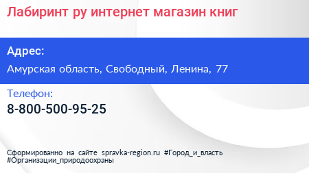 Лабиринт.ру, интернет-магазин книг по адресу Амурская область, Свободный, Ленина, 77 в дальнейшем Организация, размещена в следующих категориях:
