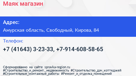 Маяк, магазин по адресу Амурская область, Свободный, Кирова, 84 в дальнейшем Организация, размещена в следующих категориях: