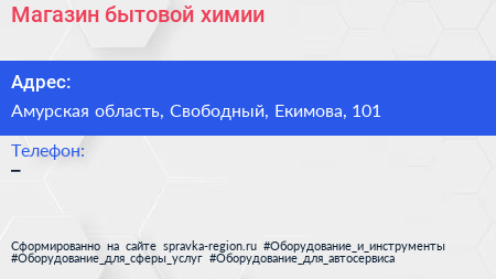 Магазин бытовой химии по адресу Амурская область, Свободный, Екимова, 101 в дальнейшем Организация, размещена в следующих категориях: