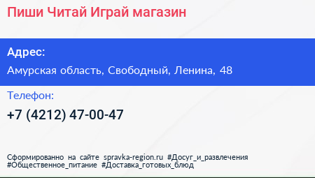 Пиши-Читай-Играй, магазин по адресу Амурская область, Свободный, Ленина, 48 в дальнейшем Организация, размещена в следующих категориях:
