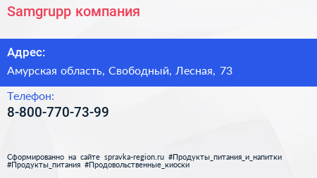 Samgrupp, компания по адресу Амурская область, Свободный, Лесная, 73 в дальнейшем Организация, размещена в следующих категориях: