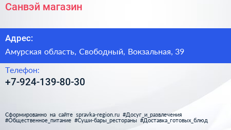 Санвэй, магазин по адресу Амурская область, Свободный, Вокзальная, 39 в дальнейшем Организация, размещена в следующих категориях: