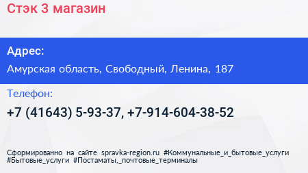 Стэк 3, магазин по адресу Амурская область, Свободный, Ленина, 187 в дальнейшем Организация, размещена в следующих категориях:
