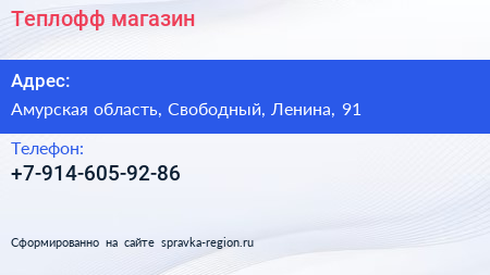 Теплофф, магазин по адресу Амурская область, Свободный, Ленина, 91 в дальнейшем Организация, размещена в следующих категориях: