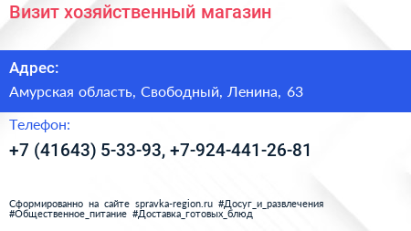 Визит, хозяйственный магазин по адресу Амурская область, Свободный, Ленина, 63 в дальнейшем Организация, размещена в следующих категориях: