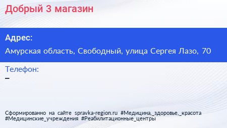 Добрый 3, магазин по адресу Амурская область, Свободный, улица Сергея Лазо, 70 в дальнейшем Организация, размещена в следующих категориях: