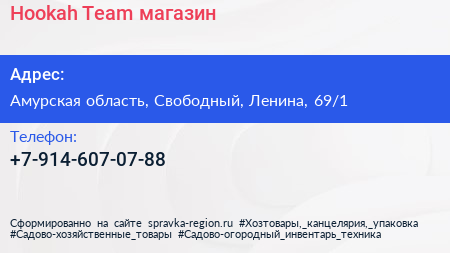 Hookah Team, магазин по адресу Амурская область, Свободный, Ленина, 69/1 в дальнейшем Организация, размещена в следующих категориях: