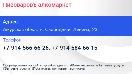 Пивоваровъ, алкомаркет по адресу Амурская область, Свободный, Ленина, 23 в дальнейшем Организация, размещена в следующих категориях: