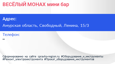 ВЕСЁЛЫЙ МОНАХ, мини-бар по адресу Амурская область, Свободный, Ленина, 15/3 в дальнейшем Организация, размещена в следующих категориях: