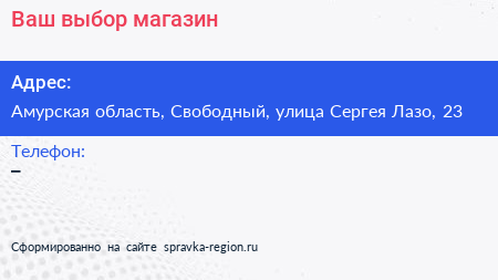 Ваш выбор, магазин по адресу Амурская область, Свободный, улица Сергея Лазо, 23 в дальнейшем Организация, размещена в следующих категориях: