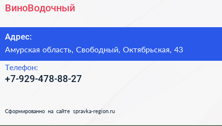 ВиноВодочный по адресу Амурская область, Свободный, Октябрьская, 43 в дальнейшем Организация, размещена в следующих категориях: