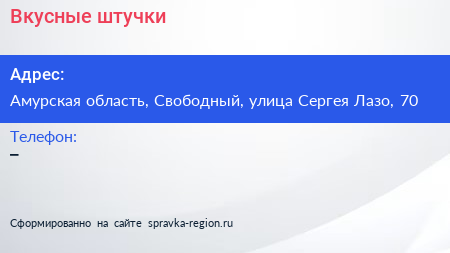 Вкусные штучки по адресу Амурская область, Свободный, улица Сергея Лазо, 70 в дальнейшем Организация, размещена в следующих категориях: