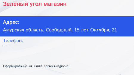 Зелёный угол, магазин по адресу Амурская область, Свободный, 15 лет Октября, 21 в дальнейшем Организация, размещена в следующих категориях: