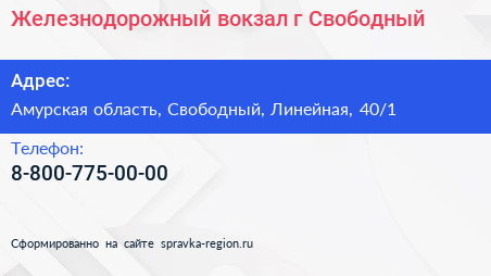 Железнодорожный вокзал, г. Свободный по адресу Амурская область, Свободный, Линейная, 40/1 в дальнейшем Организация, размещена в следующих категориях: