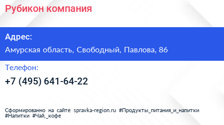 Рубикон, компания по адресу Амурская область, Свободный, Павлова, 86 в дальнейшем Организация, размещена в следующих категориях: