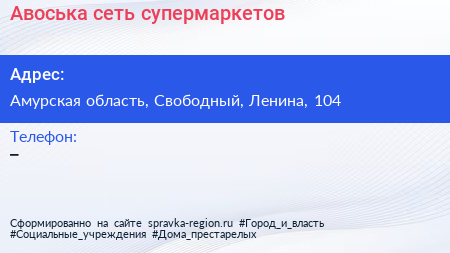 Авоська, сеть супермаркетов по адресу Амурская область, Свободный, Ленина, 104 в дальнейшем Организация, размещена в следующих категориях: