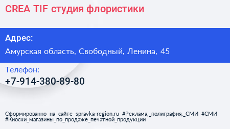 CREA`TIF, студия флористики по адресу Амурская область, Свободный, Ленина, 45 в дальнейшем Организация, размещена в следующих категориях:
