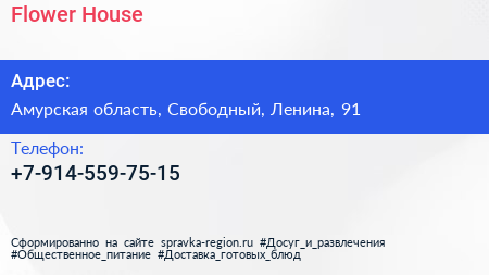 Flower House по адресу Амурская область, Свободный, Ленина, 91 в дальнейшем Организация, размещена в следующих категориях: