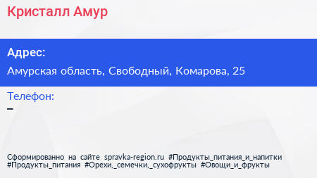 Кристалл-Амур по адресу Амурская область, Свободный, Комарова, 25 в дальнейшем Организация, размещена в следующих категориях: