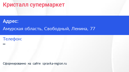 Кристалл, супермаркет по адресу Амурская область, Свободный, Ленина, 77 в дальнейшем Организация, размещена в следующих категориях: