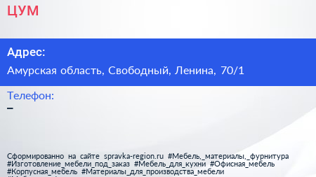 ЦУМ по адресу Амурская область, Свободный, Ленина, 70/1 в дальнейшем Организация, размещена в следующих категориях: