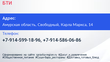 БТИ по адресу Амурская область, Свободный, Карла Маркса, 14 в дальнейшем Организация, размещена в следующих категориях: