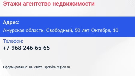 Этажи, агентство недвижимости по адресу Амурская область, Свободный, 50 лет Октября, 10 в дальнейшем Организация, размещена в следующих категориях: