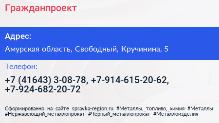 Гражданпроект по адресу Амурская область, Свободный, Кручинина, 5 в дальнейшем Организация, размещена в следующих категориях: