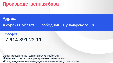 Производственная база по адресу Амурская область, Свободный, Луначарского, 38 в дальнейшем Организация, размещена в следующих категориях: