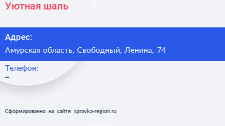 Уютная шаль по адресу Амурская область, Свободный, Ленина, 74 в дальнейшем Организация, размещена в следующих категориях: