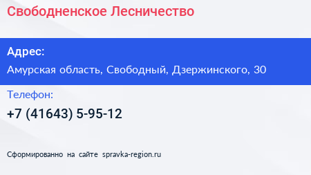 Свободненское Лесничество по адресу Амурская область, Свободный, Дзержинского, 30 в дальнейшем Организация, размещена в следующих категориях: