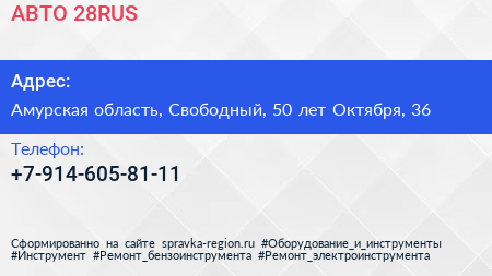 АВТО 28RUS по адресу Амурская область, Свободный, 50 лет Октября, 36 в дальнейшем Организация, размещена в следующих категориях: