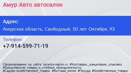 Амур Авто, автосалон по адресу Амурская область, Свободный, 50 лет Октября, 93 в дальнейшем Организация, размещена в следующих категориях: