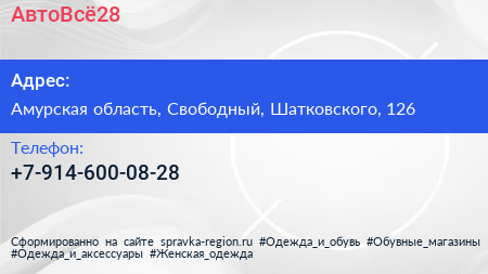 АвтоВсё28 по адресу Амурская область, Свободный, Шатковского, 126 в дальнейшем Организация, размещена в следующих категориях: