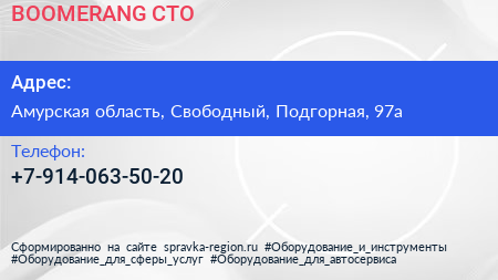 BOOMERANG, СТО по адресу Амурская область, Свободный, Подгорная, 97а в дальнейшем Организация, размещена в следующих категориях: