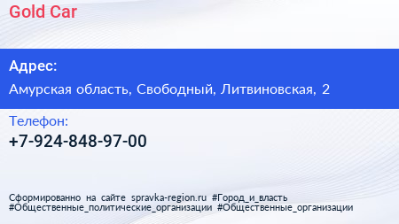 Gold Car по адресу Амурская область, Свободный, Литвиновская, 2 в дальнейшем Организация, размещена в следующих категориях: