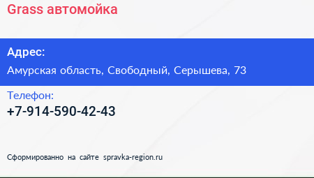 Grass, автомойка по адресу Амурская область, Свободный, Серышева, 73 в дальнейшем Организация, размещена в следующих категориях: