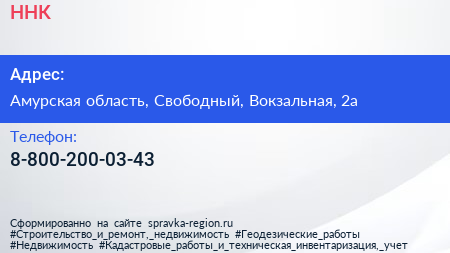 ННК по адресу Амурская область, Свободный, Вокзальная, 2а в дальнейшем Организация, размещена в следующих категориях: