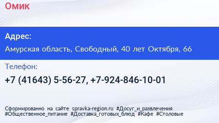 Омик по адресу Амурская область, Свободный, 40 лет Октября, 66 в дальнейшем Организация, размещена в следующих категориях: